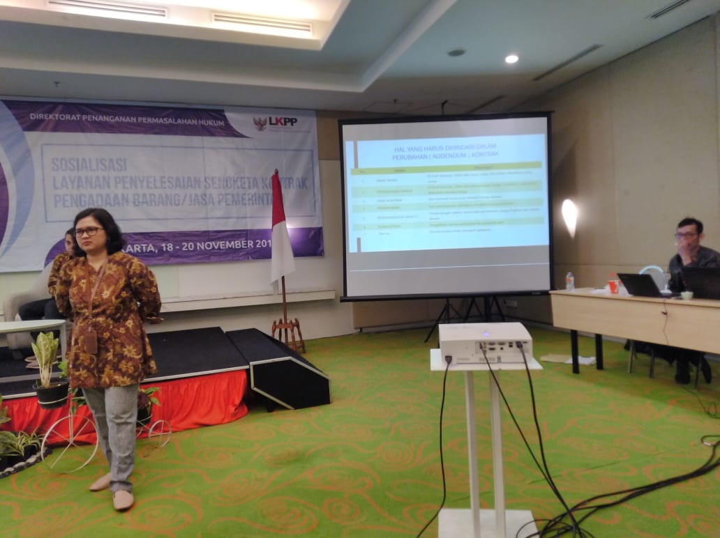 dalam rangka penyelesaian sengketa kontrak pengadaan barang jasa pemerintah maka LKPP mengenalkan Layanan Penyelesaian Sengketa (LPS) yang dalam hal ini akan ditangani langsung dari pihak LKPP. maka dari itu dari BLP kabupaten blitar mengirim salah satu anggota pokja untuk mengikuti kegiatan sosialisasi tersebut yang dilaksanakan pada tanggal 18 s.d 20 november 2019 bertempat di hotel harris jakarta pusat